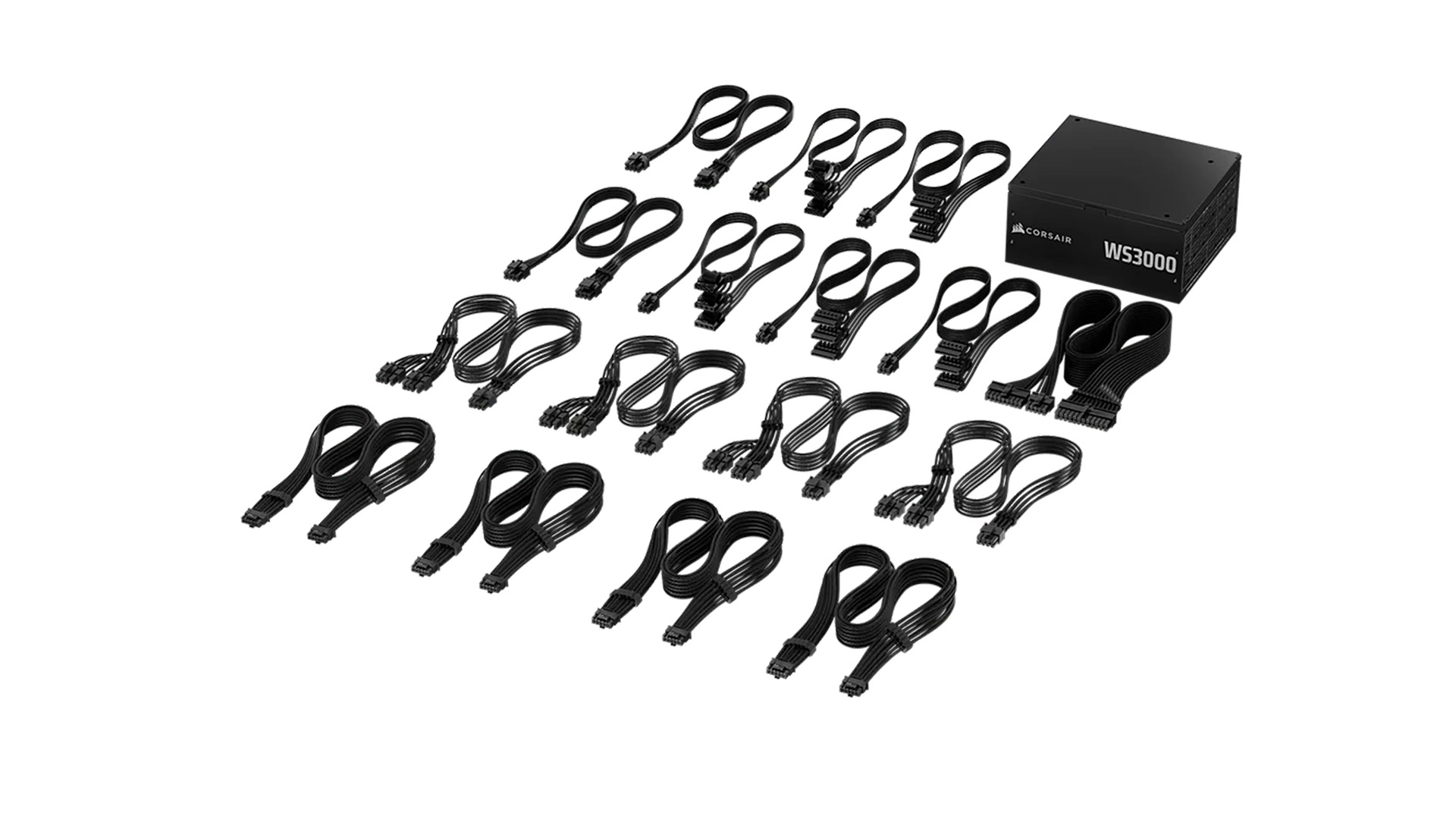 Разработанный для поддержки многочиповых конфигураций GPU, WS3000 оснащен четырьмя родными кабелями питания 12V-2×6, специально предназначенными для современных видеокарт, использующих разъем питания 12VHPWR. Кроме того, блок питания предоставляет четыре двойных 8-контактных кабеля питания PCIe, всего восемь 8-контактных разъемов питания PCIe. Также в комплект входят два 8-контактных разъема питания EPS, предназначенных для материнских плат высокого класса или рабочих станций с энергоемкими процессорами.