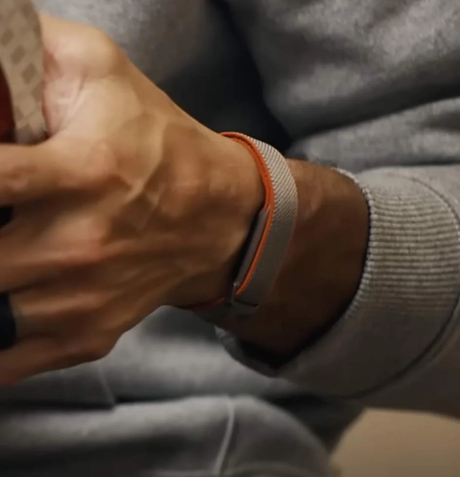 Гаджет выглядит заметно тоньше, чем популярные ремешки Whoop. У него минималистичный дизайн и сплошной ремешок, который просто оборачивается вокруг запястья и фиксируется сам на себе. Такая конструкция почти сливается с кожей и не бросается в глаза.