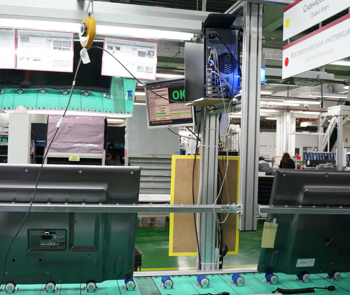 И снова контроль, затем готовые платы подаются в цех, где собираются телевизоры