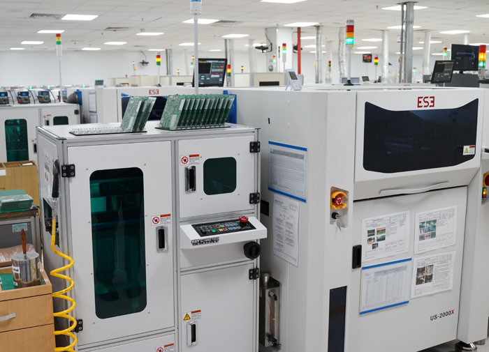 Автоматы по установке мелких деталей, крупные детали устанавливаются вручную, после плата подается в паяльный автомат