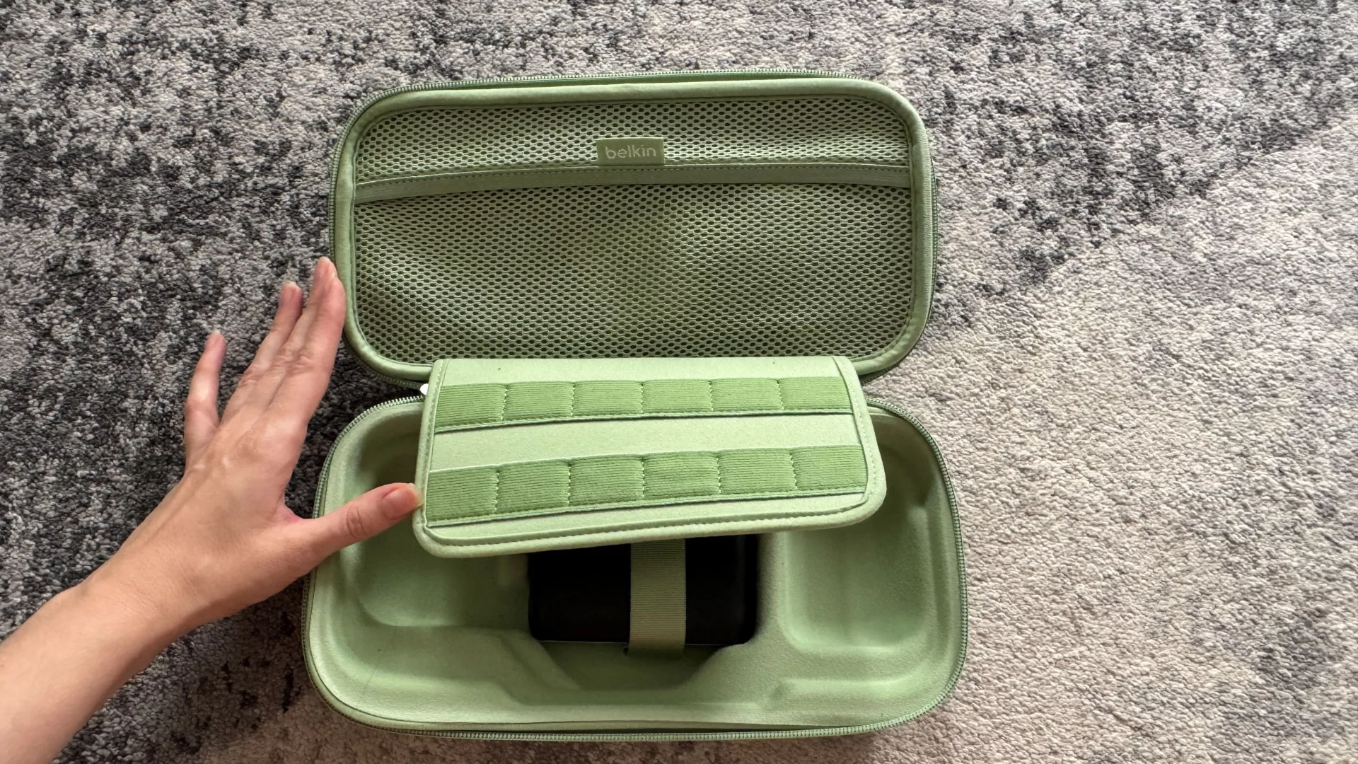 Доступный в трёх шикарных цветах (чёрный, песочный и шалфей), зарядный чехол Belkin имеет хорошую подкладку и изготовлен из прочного полиэстера с молнией по периметру. Я в восторге от модного цвета шалфея, который скорее зелёный, чем серый, и отлично вписывается в мою эстетику, вдохновлённую матча, на 2025 год.