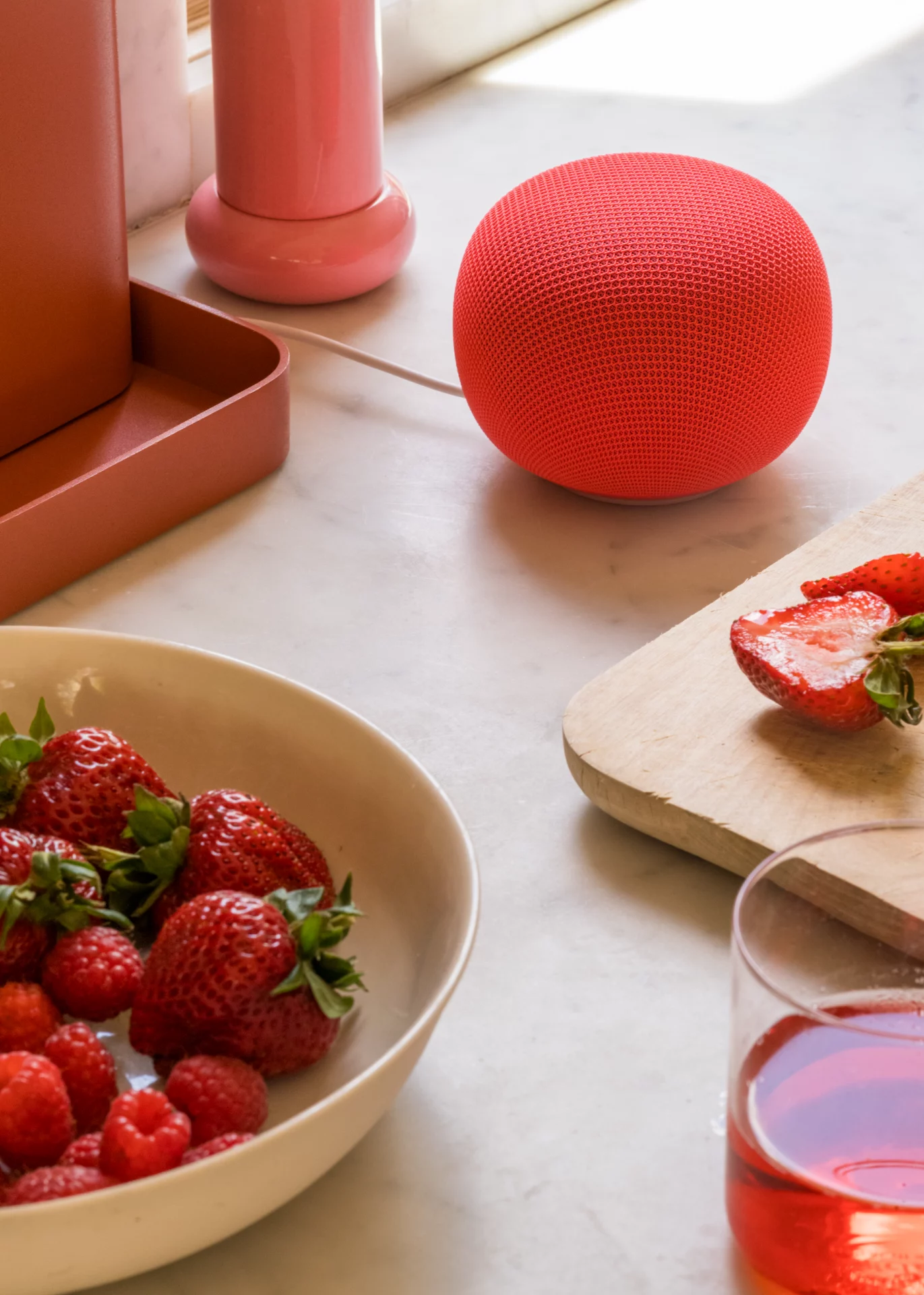 Колонка Google Home поставляется в разных цветах, чтобы соответствовать вашему стилю дома.