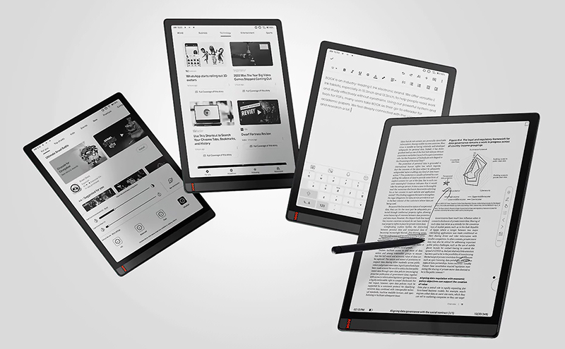 Чем хорош: огромный 13-дюймовый сенсорный экран E Ink с пластиковой подложкой, поддержка стилуса Wacom, подсветка с регулировкой цветовой температуры, корпус из алюминиево-магниевого сплава, динамик и микрофон, восьмиядерный процессор Qualcomm, ОС Android 11 с поддержкой Google Play