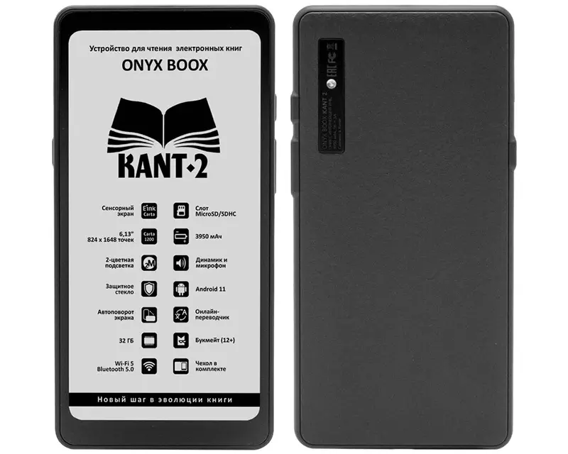 Особенности: необычный смартфонный формат с 6,1-дюймовым экраном, подсветка с регулировкой цветовой температуры, ОС Android, динамик, микрофон, поддержка массы форматов книг и документов? защита от брызг, обложка в комплекте