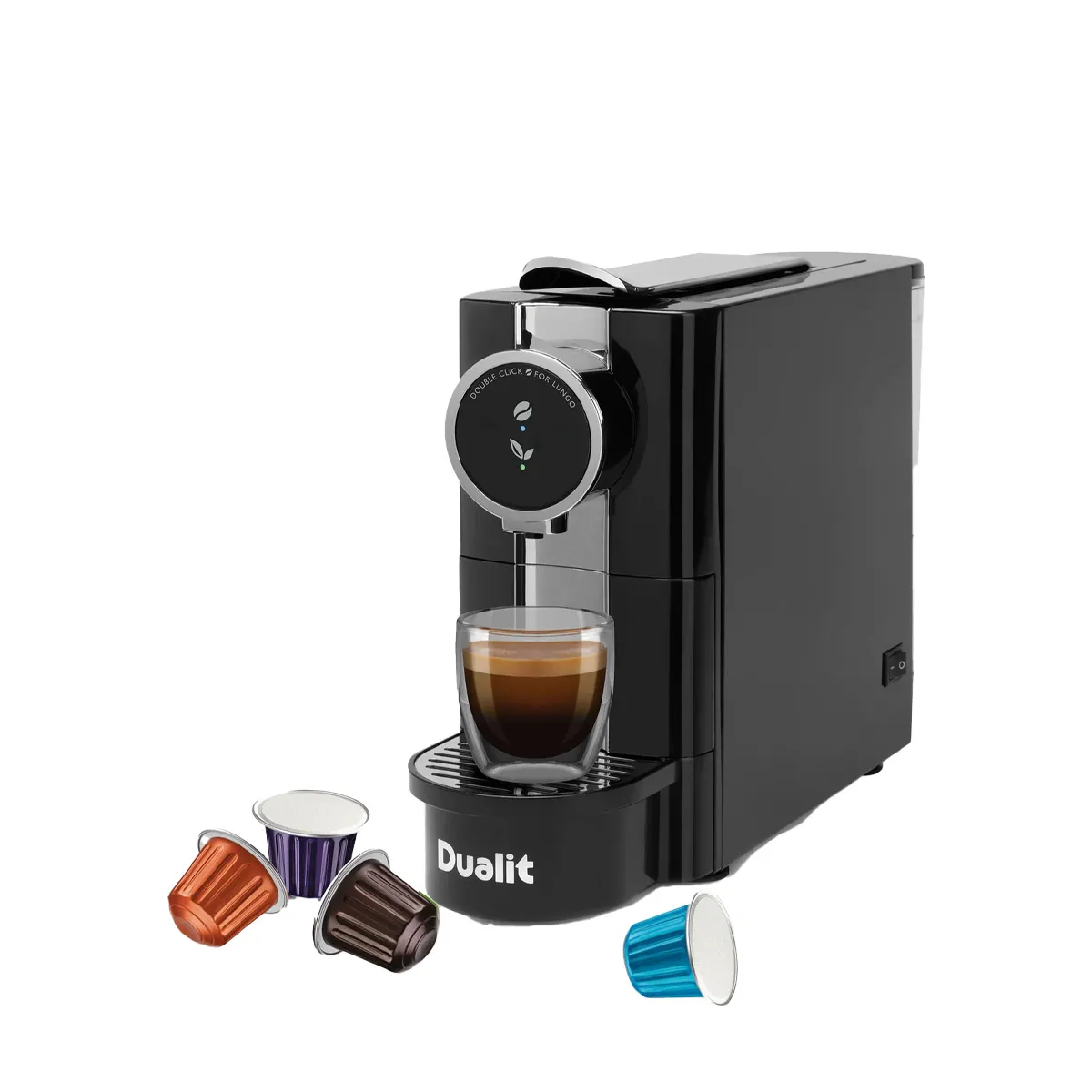 Dualit Cafe Plus — уникальная капсульная кофемашина, представленная брендом. Она способна работать с капсулами Nespresso и собственной линейкой Dualit. В комплект не входит вспениватель молока, но его можно приобрести отдельно. Кроме того, Dualit предлагает средство для переработки использованных капсул — Dualit EcoPress, совместимое с марками, подходящими для Nespresso.