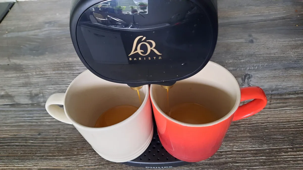 Способность наполнять большие кружки объемом 350 мл — одна из функций этого устройства, которое также совместимо с капсулами L’OR Barista XXL, содержащими больше кофе. Но настоящее преимущество заключается в наличии двойного дозаторного отверстия.