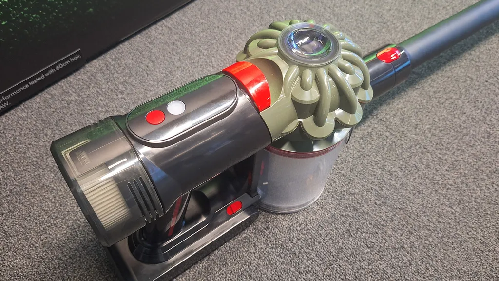 Ещё одно важное изменение заключается в том, что V8 Cyclone управляется с помощью кнопки, а не курка. Это хорошая новость для тех, кто собирается пылесосить в течение длительного времени и хочет избежать боли в пальце, хотя это и означает, что вам придётся держать руку наготове, чтобы включать и выключать пылесос.