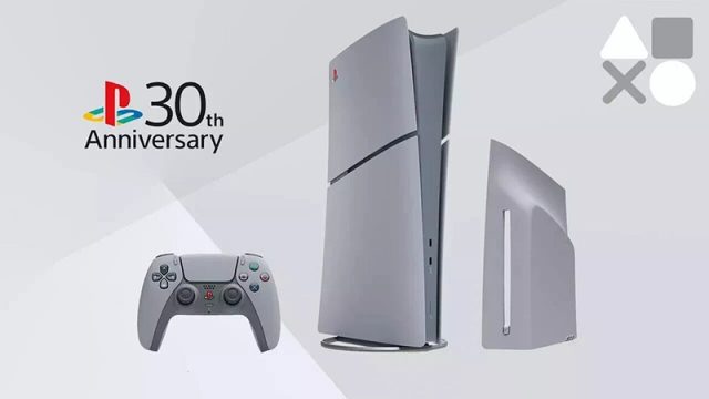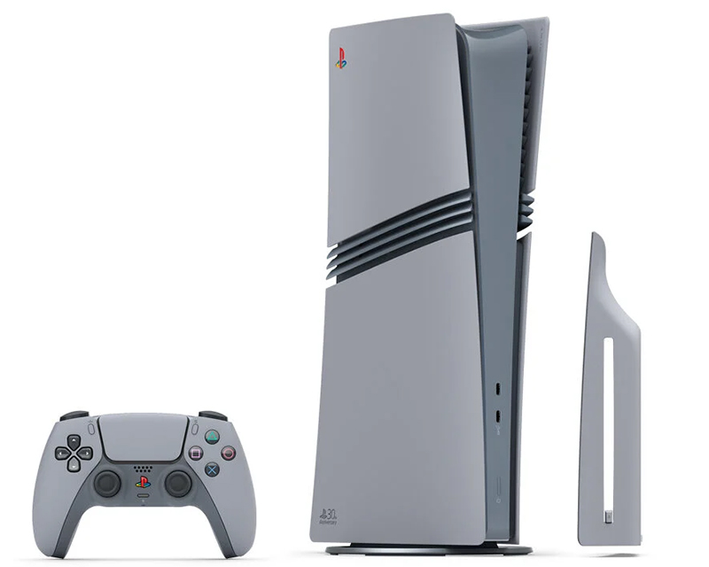 Дизайн консоли дополнен минималистичным логотипом PS, а беспроводной контроллер DualSense оформлен в аналогичном стиле с эксклюзивным символом 30-летия PlayStation.