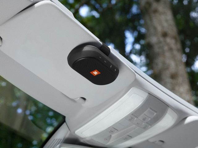 JBL Trip не требует сложной инсталляции: на солнцезащитный козырек автомобиля устанавливается клипса, к которой, в свою очередь, с помощью магнита крепится портативный динамик. Система шумоподавления позволяет говорить по телефону в режиме громкой связи, а также использовать голосовое управление Siri или Google Now в том числе и при опущенных стеклах окон. При этом JBL Trip можно взять с собой из машины, чтобы дослушать музыкальный трек или закончить телефонный разговор на ходу.