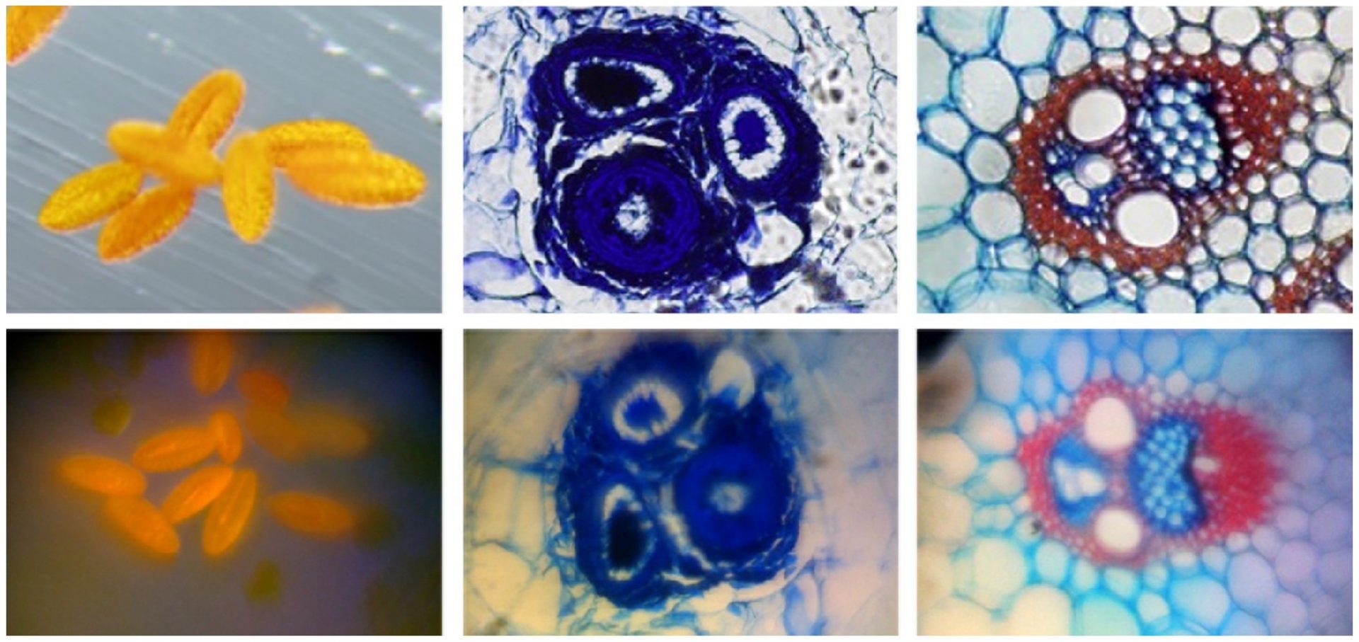 Пример таких изображений продемонстрирован на фото ниже: верхний ряд снимков получен с помощью специального медицинского микроскопа, нижний – с помощью новой технологии и iPhone: