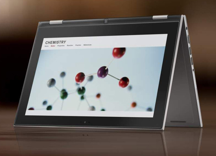 Первая новинка – ноутбук-трансформер Dell Inspiron 11 (3147). Он оснащен сенсорным экраном диагональю 11,6 дюйма, а толщина корпуса составляет 19 мм. Устройство сконструировано на основе нового поворотного механизма, благодаря чему аппарат раскладывается на 360 градусов, переключаясь в один из четырех режимов работы: ноутбук, мольберт, планшет на подставке и классический планшет.