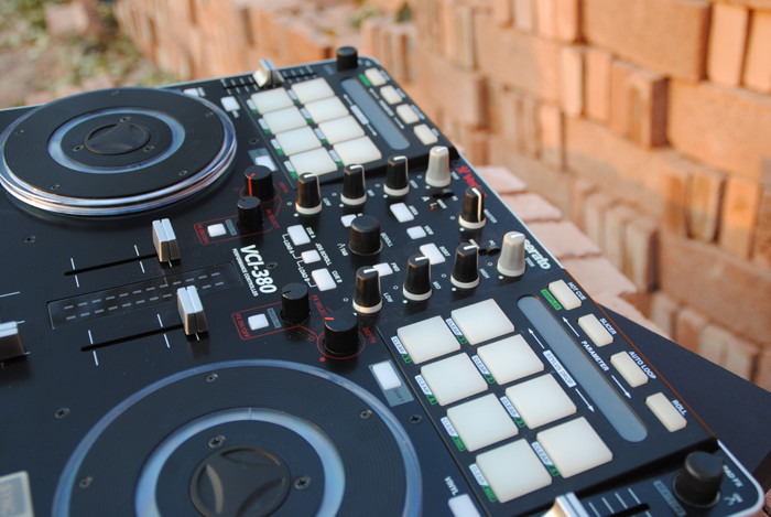 В качестве апгрейда я присмотрел VCI-380 – модель до сих пор актуальную, несмотря на то, что она увидела свет весной 2012-го года. Более «навороченный» контроллер VCI-400 мне не пришёлся по душе. И по габаритам (457×328×61 мм против 427×304×60 мм) и по весу (4,5 кг против 3,5 кг) он ощутимо массивнее. К тому же четырёхканальный микшер мне просто не нужен. Я далеко не Jeff Mills, который, бывает, играет по 3, а то и 4 техно-трека одновременно. Моя музыка довольно проста в сведении и не требует многоканальных изощрений.