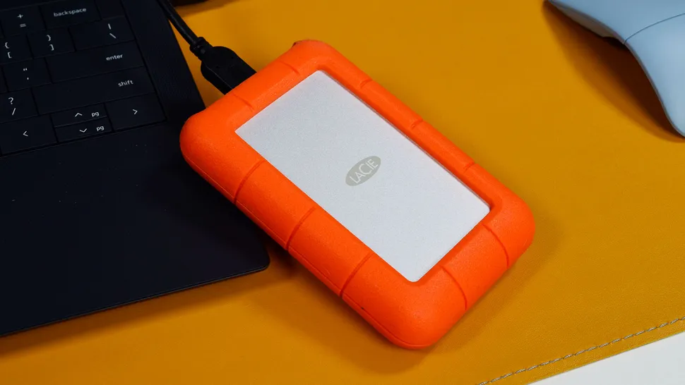 - LaCie Rugged Mini — самый прочный. Самым большим преимуществом LaCie Rugged Mini является его долговечность: он устойчив к падениям и ударам, что позволяет использовать его в условиях, характерных для творческой работы на открытом воздухе. Несмотря на высокую производительность, превосходящую многих конкурентов без твердотельных накопителей по скорости чтения и копирования, он стоит дорого за терабайт. Несмотря на это, трехлетняя гарантия повышает его ценность, делая его привлекательным выбором для тех, кто отдает предпочтение прочности и надежности в сложных условиях, хотя и по высокой цене.