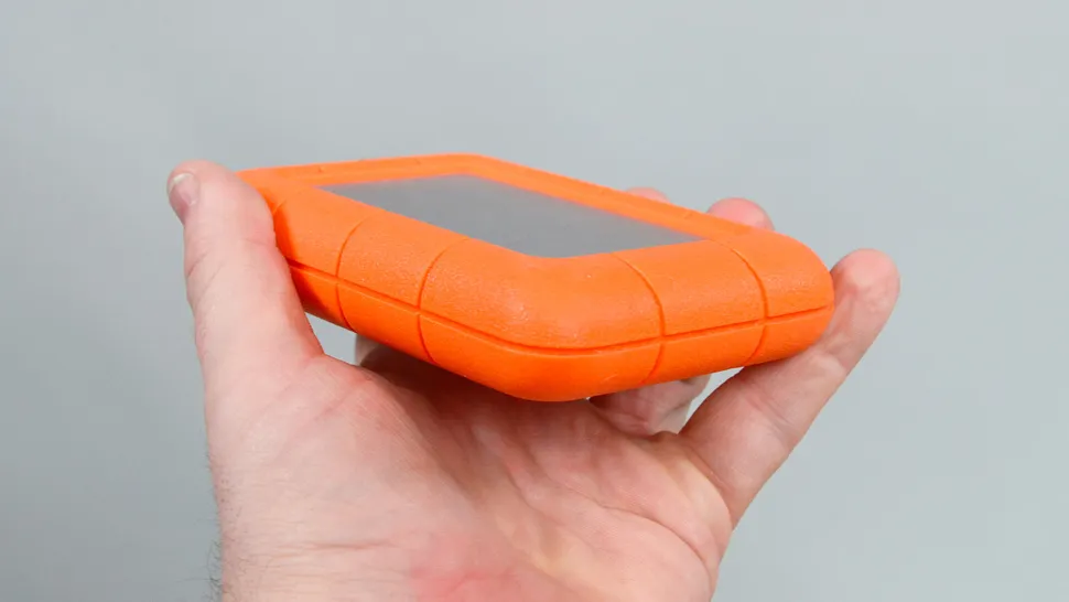Внешний жёсткий диск LaCie Rugged Mini — достаточно надёжная модель для накопителя без SSD-накопителя, но вы здесь для того, чтобы воспользоваться дополнительной защитой, которую обеспечивает ярко-оранжевый амортизатор.