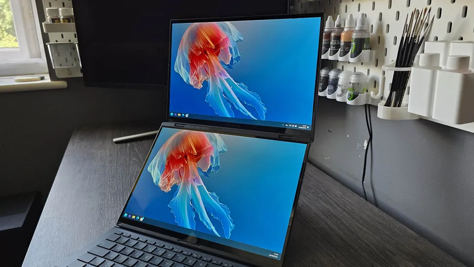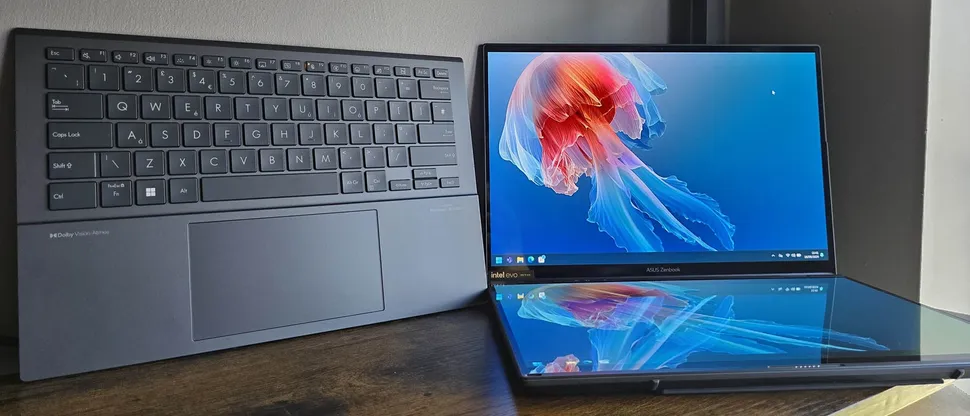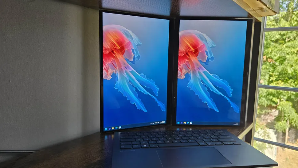 Давайте начнём с очевидного: было бы легко отмахнуться от Asus ZenBook Duo как от устройства-уловки, причуды для любителей многозадачности. Но я должен сказать, что этот ноутбук с двумя экранами выглядит премиально и обладает выдающейся производительностью. Два экрана чёткие, красочные, с плавным временем отклика и частотой обновления.