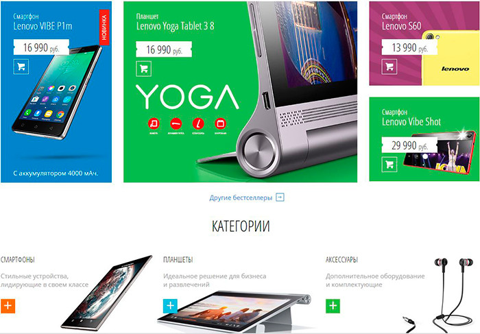 По состоянию на ноябрь 2015 года в России собственные интернет-магазины помимо Lenovo есть у Apple, Huawei и ASUS.