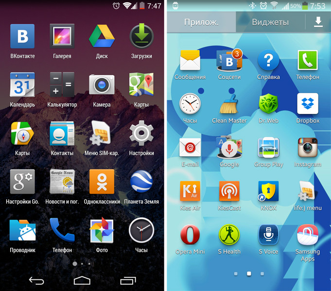 Разница в размерах иконок в LG Nexus 5 (слева) и Samsung Galaxy S4. У обоих 5-дюймовые Full HD-экраны