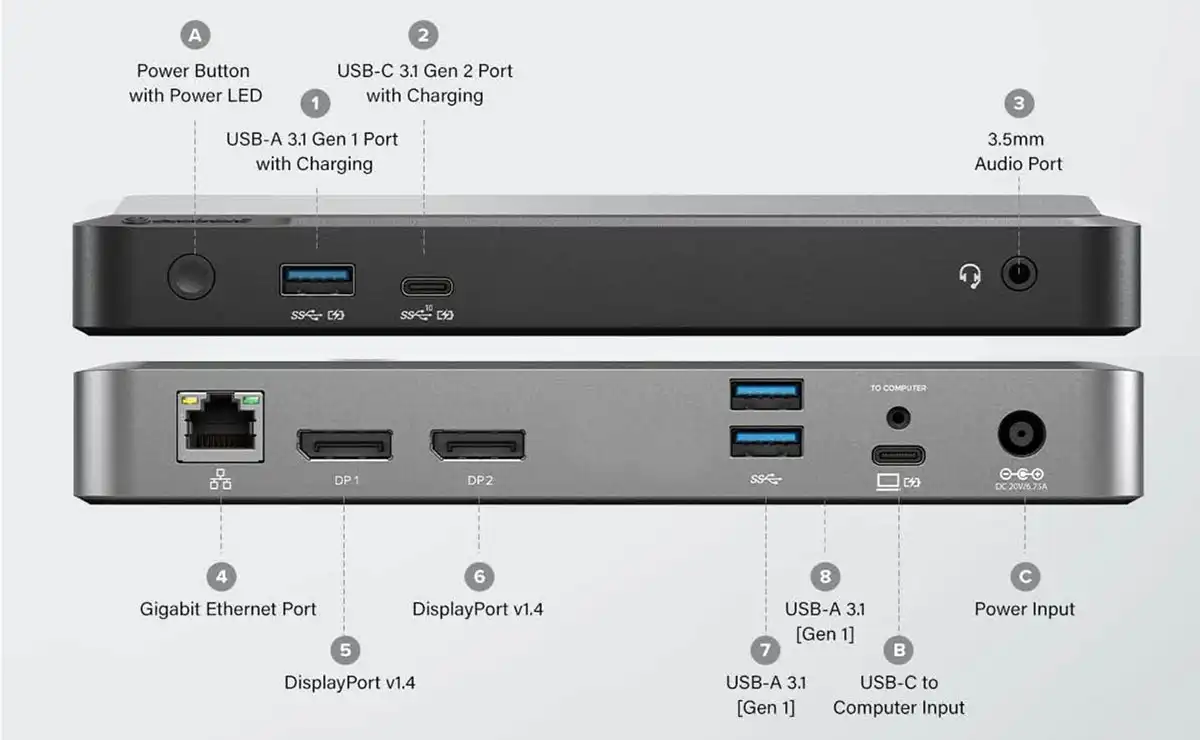 Оба порта USB-C имеют скорость 10 Гбит/с 2-го поколения, в то время как некоторые док-станции могут похвастаться только портами C-типа со скоростью 5 Гбит/с.
