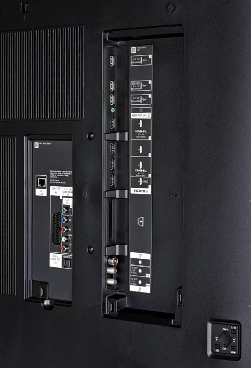 Входы: Спрятаны под крышками на задней панели. На случай настенного размещения телевизора в комплект входит «репликатор портов»