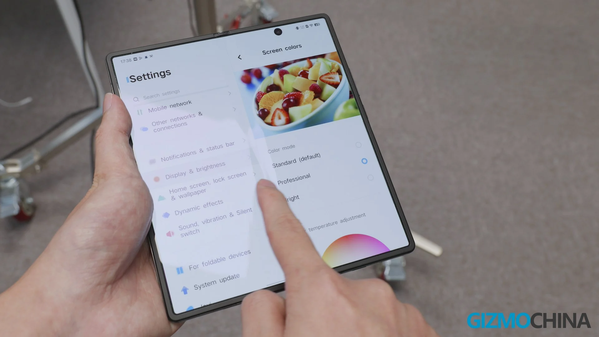 Благодаря новому шарниру складка посередине внутреннего экрана выглядит незаметной, но ее все равно можно заметить при взгляде сбоку. К счастью, мы не будем использовать телефон таким образом. Но тем не менее мы можем почувствовать ее, проведя пальцами по экрану.