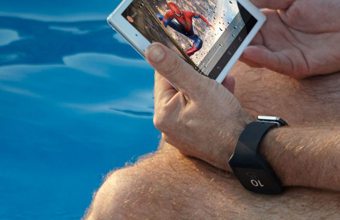 Поскольку фото сделано рядом с бассейном, оба гаджета – и часы, и планшет – вероятнее всего заключены в водоустойчивые корпуса.