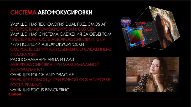 Также EOS RP оснащается системой стабилизации изображения Dual Sensing IS, которая компенсирует дрожание камеры при съемке с рук, и имеет бесшумный режим для съемки без привлечения внимания.