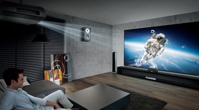Кроме того, подумайте о проекторе. Размер экрана должен быть таким же, как максимальный размер изображения проектора. Длиннофокусный проектор должен находиться дальше от экрана, чтобы получить максимальный размер изображения. В этом случае максимальный размер экрана будет зависеть от проектора и от того, на каком расстоянии от стены он может быть установлен. Проекторы с коротким или ультракоротким фокусом могут располагаться близко к экрану и при этом воспроизводить большое изображение. Они отлично подходят для небольших помещений, но вам все равно нужно будет основывать размер экрана на максимальном размере изображения, которое проектор может создать в отведенном пространстве.