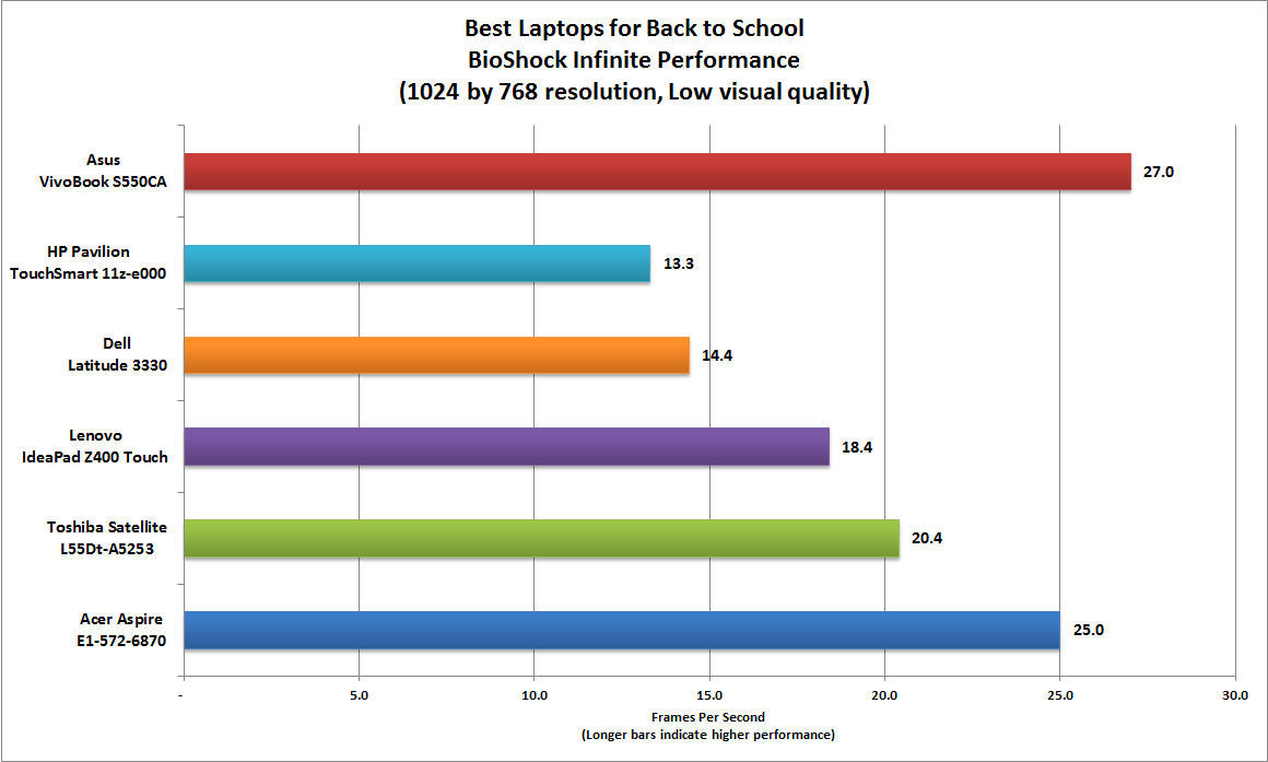 | Ни один из недорогих портативных компьютеров не смог продемонстрировать хорошую производительность в требовательных к ресурсам играх наподобие BioShock Infinite. |