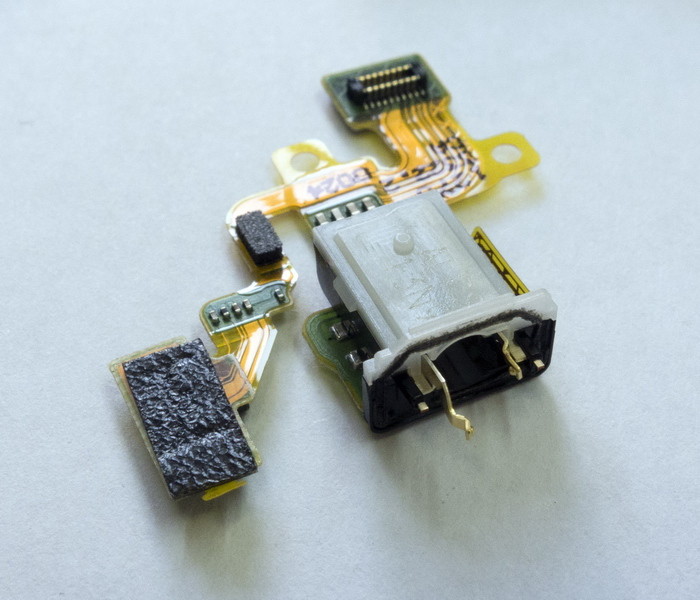 Немного удивила конструкция гнезда для наушников и гарнитуры. Оно не монолитное, как это обычно бывает, а разборное.