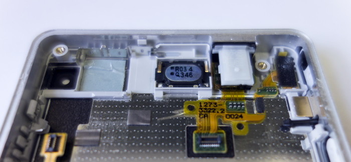 Порадовал основной динамик. Это классическая конструкция, и где только я ее не встречал. И в Nokia 5800, и в Microsoft Surface… Все течет, все меняется, а динамик остается. Пленочка на тыльной части — это тоже для защиты от воды.