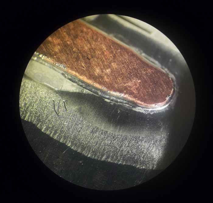 При рассматривании в микроскопе ничего необычного в конструкции заметить не удалось.