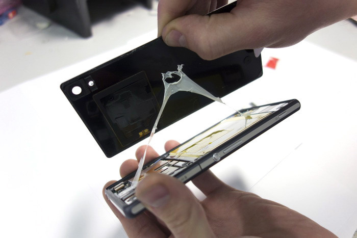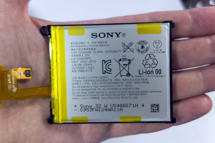 Разбирать Z2 чуть сложнее, чем предшественника. Как и в прошлой версии, водонепроницаемость обеспечивается двусторонним скотчем по периметру задней крышки, однако теперь последняя приклеена и к аккумулятору. С точки зрения надежности и жесткости конструкции – исключительно правильное решение.
