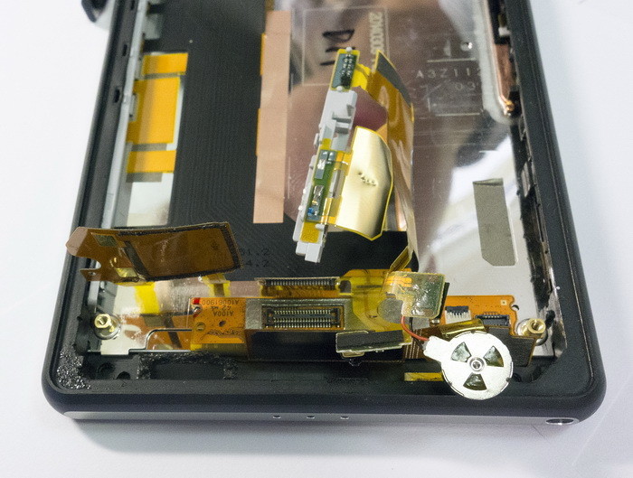 С точки зрения ремонтопригодности аппарат находится на одном уровне Z1. У него несколько проще поменять экран, потому что теперь последний держится на защелках и снимается относительно легко. Но это «компенсируется» более запутанной системой хрупких шлейфов. Так что самому внутрь лучше не лезть. Даже если дома имеется профессиональная паяльная станция.