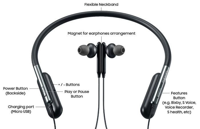 Samsung U Flex поддерживает взаимодействие с голосовым помощником Bixby, который реализован в некоторых смартфонах корейской компании – например, Galaxy S8. Время автономной работы наушников составляет 10 часов. Среди прочего отметим защиту от брызг воды.
