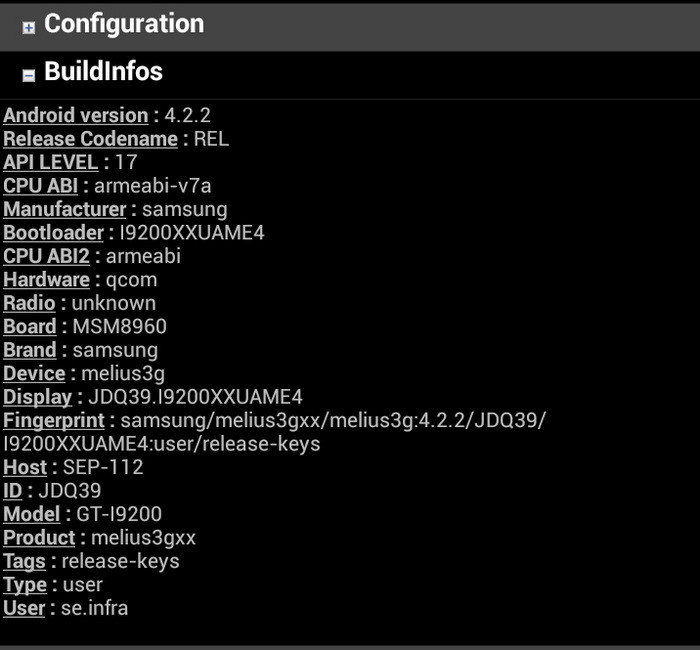 По поводу того, что стоит внутри Galaxy Mega 6.3 есть определенные сомнения. Дело в том, что разные источники, равно как и разные диагностические программы, предлагают противоречивые сведения. В одном все сходятся: внутри стоит двухъядерный процессор, работающий на частоте до 1.7 ГГц. Но кто его производитель? Некоторые экспертные ресурсы так запутались, что в рамках одного обзора сначала указывают Samsung Exynos 5250, а чуть ниже – Qualcomm Snapdragon 400. По итогам сравнения данных из нескольких источников осмелюсь предположить наличие внутри моего экземпляра чипа Qualcomm MSM8960AB с графикой Adreno 305. По нынешним временам – ничего особенного. Но это железо в сочетании с 1,5 Гбайт оперативной памяти обеспечивает достаточную производительность и не перегружает батарею.
