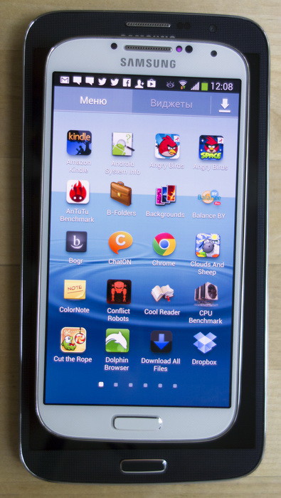 О программной составляющей ничего интересного сказать нельзя. Это Android 4.2.2 с натянутой поверх фирменной оболочкой TouchWiz. Никаких доработок по сравнению с версиями для S III и S4 вы не найдете. Все точно такое же, только из-за большой диагонали шрифты и иконки выглядят гораздо крупнее. И виджеты, кстати, тоже, не трогали, поэтому погодный информатор теперь занимает половину экрана и демонстрирует просто чудеса эффективности использования пространства. Стив Джобс за такое сожрал бы живьем, несмотря на всё свое веганство. Ну а тут остается только морщиться и подбирать более подходящий альтернативный вариант, благо их немало.
