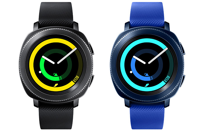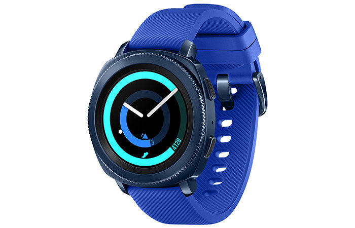 Samsung Gear Sport – круглые (экран AMOLED, 1,2 дюйма, 360 x 360 точек) спортивные часы, среди ключевых возможностей которых упоминаются контроль за достижением фитнес-целей, уведомления о правильном питании и советы по поддержанию физической формы. Для мониторинга ежедневной активности есть набор приложений от компании Under Armour – Armour Record, MyFitnessPal, MapMyRun и Endomondo.
