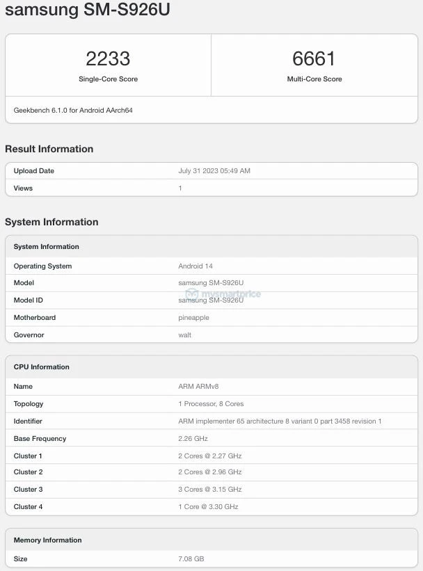 Слившаяся в сеть информация о бенчмарке Samsung Galaxy S24+ Snapdragon 8 Gen 3 свидетельствует о более высокой скорости работы и мощных ядрах