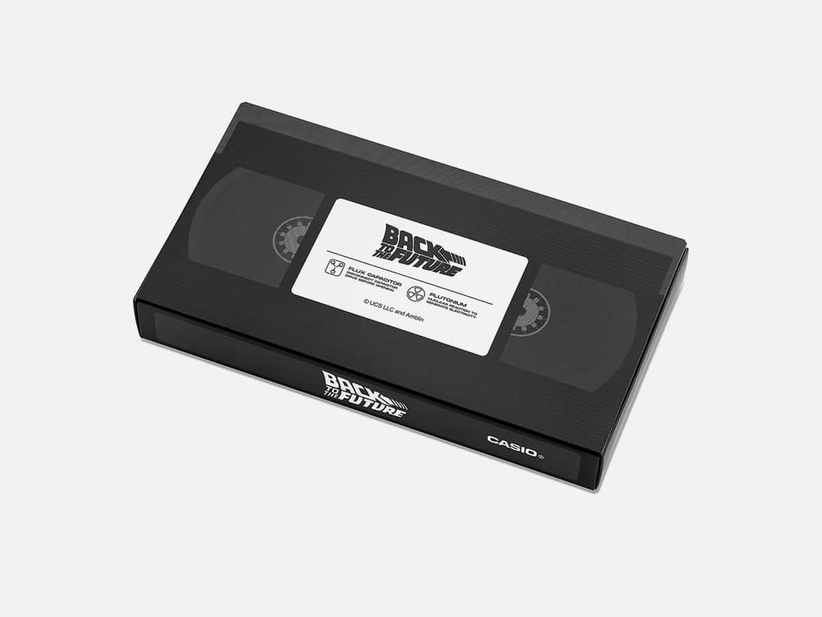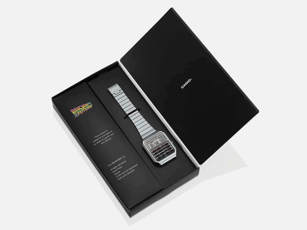 Casio и «Назад в будущее» можно назвать идеальным дуэтом. У обоих брендов общая история, но они также воплощают непреходящую мощь 1980-х. Часы-калькулятор Casio всё ещё производятся спустя четыре десятилетия, и новые поколения открывают для себя культовую кинофраншизу. С новыми цифровыми часами CA-500WEBF всё возвращается на круги своя, словно вишенка на торте. И, как вишенка на торте, часы представлены в специальной упаковке в стиле видеокассеты. Как же их не любить?!