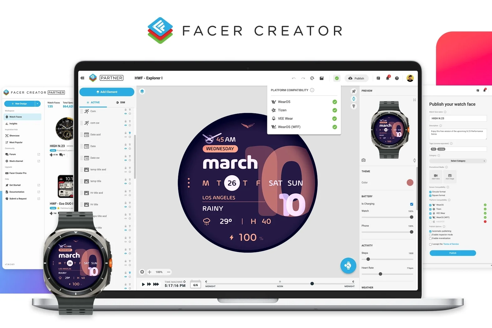 Для дизайнеров Facer Creator также получил значительные обновления. Теперь платформа предлагает улучшенные инструменты для создания кроссплатформенных лиц и обновлённую среду для создания более профессиональных результатов. Более подробную информацию об обновлениях Creator можно найти в блоге Facer.