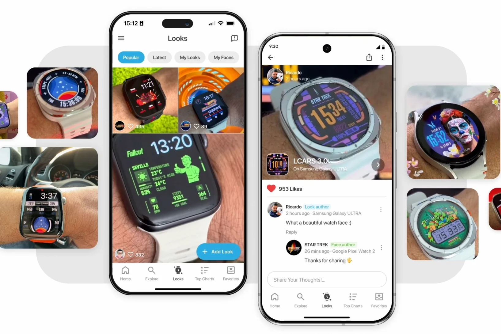 В обновлении также появилась функция «Внешний вид» — социальная функция, которая позволяет пользователям демонстрировать и изучать готовые наборы для часов, в том числе комбинации циферблата и ремешка. Эта функция постепенно внедряется на разных платформах и в разных регионах. Кроме того, в Facer теперь есть специальный магазин ремешков для часов премиум-класса, многие из которых представлены непосредственно в общих наборах «Внешний вид». Премиум-подписчики получают скидки как на циферблаты, так и на ремешки.