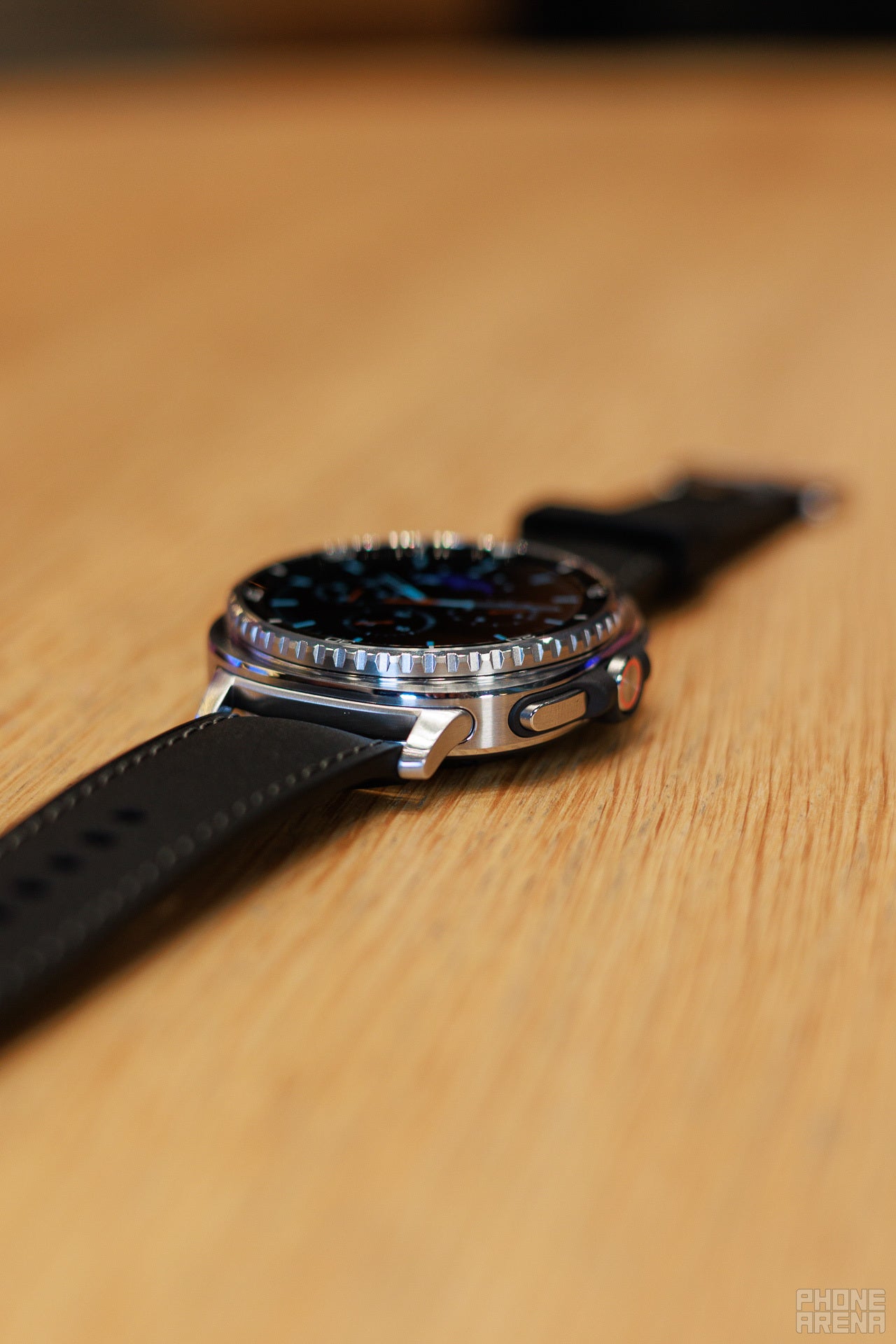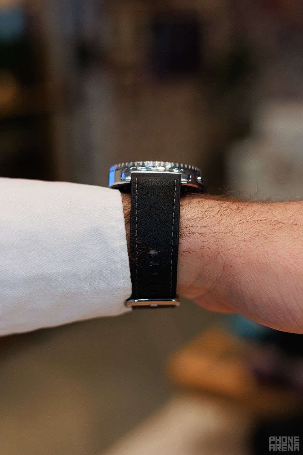 Сразу же Watch 8 Classic ощущаются более солидными, чем их собрат. Они немного толще — 10,6 мм, и тяжелее (63,5 г), но не чрезмерно. Я тестировал модель с черным кожаным ремешком, и она выглядела и ощущалась превосходно — определенно создается впечатление «часов», а не «гаджета».