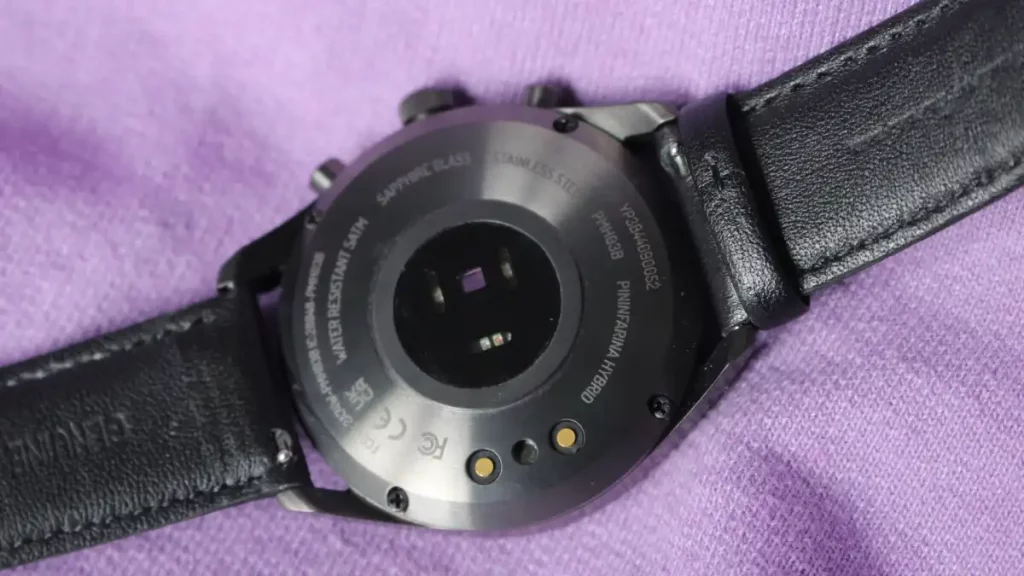У меня была кожаная версия Pinifarina Sintesi Hybrid с ремешком из натуральной итальянской кожи, который подходил к этому массивному корпусу. Это очень качественный кожаный ремешок, но он был слишком большим для моих тонких запястий. К счастью, он легко снимается, и я могла заменить его на запасной ремешок, чтобы он лучше подходил, особенно когда я занималась спортом.