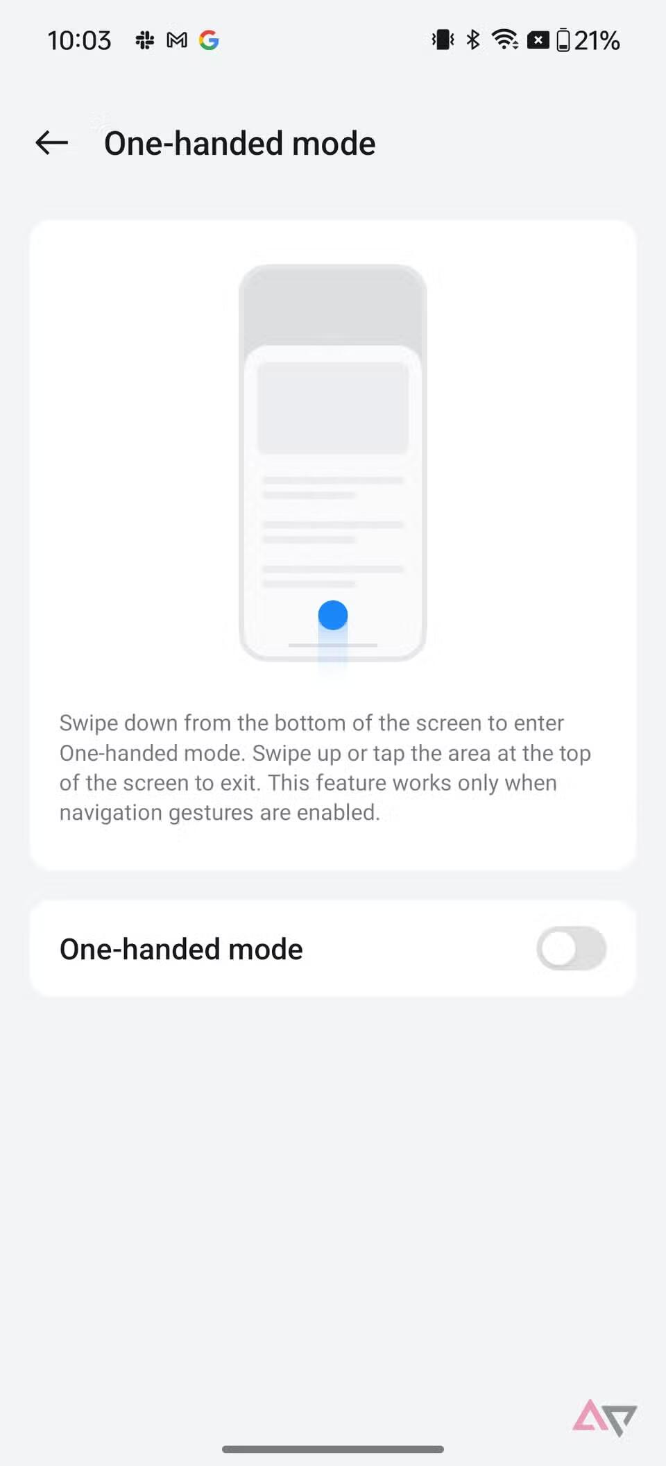 Вам неудобно пользоваться 6,7-дюймовым экраном OnePlus 12R? Включите режим использования одной рукой, переключив тумблер в приложении «Настройки». Затем проведите пальцем вниз от нижней части экрана, чтобы сдвинуть верхнюю часть экрана вниз. Так вам будет удобнее пользоваться телефоном одной рукой.