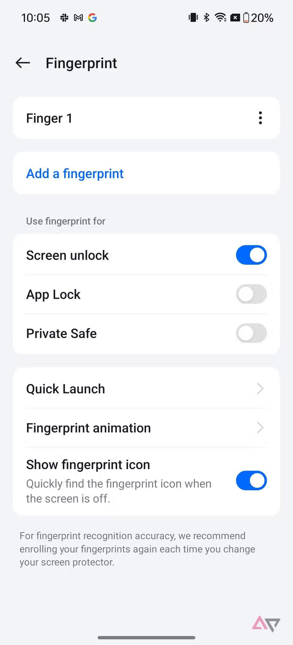 В OnePlus 12R есть удобная функция под названием «Быстрый запуск», которая позволяет быстро выполнять действия. Она находится на странице настроек «Отпечаток пальца», и для ее включения есть переключатель «Быстрый запуск». После этого вы можете изменить меню «Быстрый запуск», в котором по умолчанию есть только Google Ассистент. Когда вы закончите, удерживайте нажатой кнопку датчика отпечатков пальцев, чтобы открыть меню «Быстрый запуск» при разблокировке устройства.