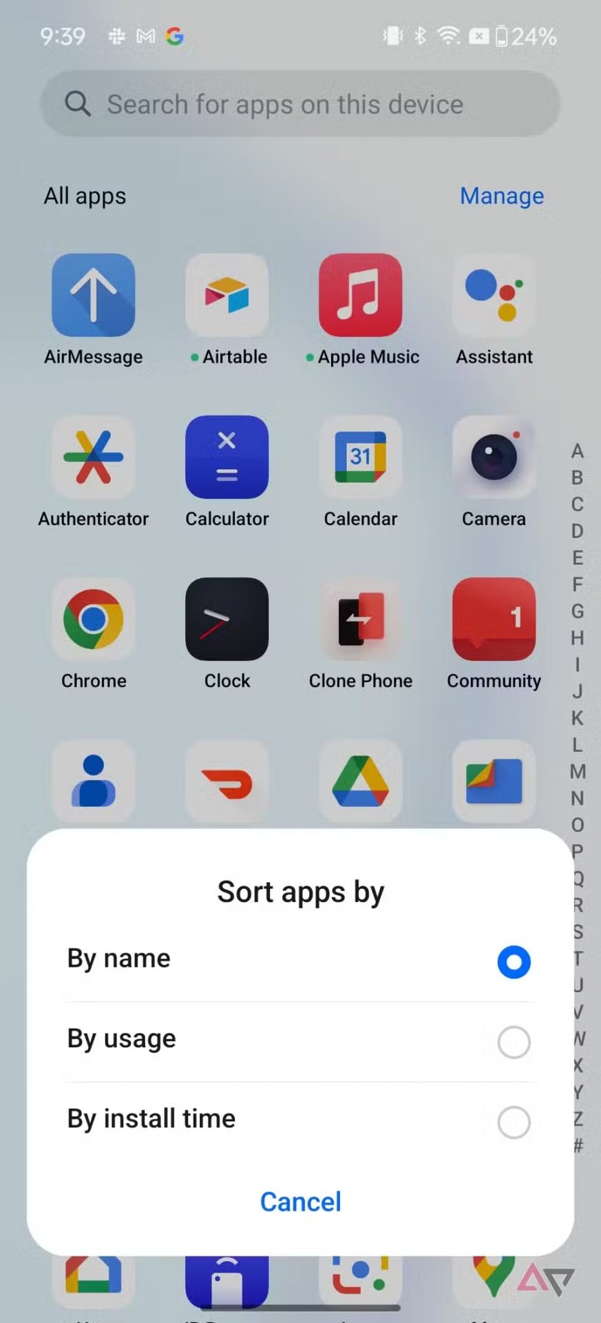 По умолчанию в панели приложений OxygenOS приложения перечислены в алфавитном порядке. Возможно, вам будет удобно видеть наиболее часто используемые приложения в верхней части списка. Это можно сделать с помощью небольшой настройки. После открытия панели приложений нажмите кнопку «Управление». Затем нажмите «Сортировка» и выберите «По использованию». Теперь наиболее часто используемые приложения будут доступны в верхней части списка.