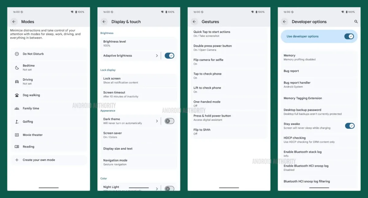 Согласно отчёту Android Authority, одним из ключевых дополнений может стать «позиционный» триггер для заставок, который позволяет активировать их только в том случае, если устройство стоит вертикально на подставке во время зарядки, а не с помощью любого зарядного устройства.