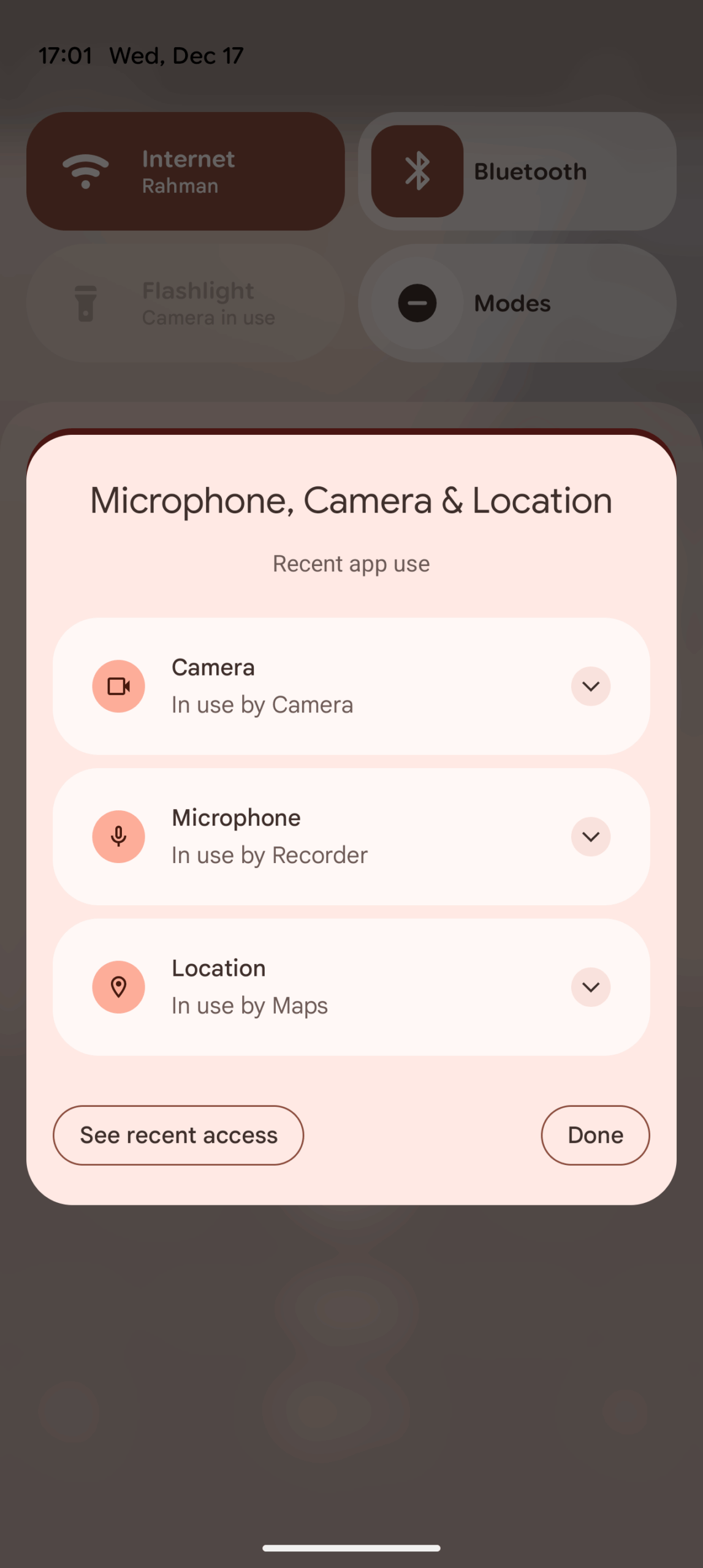 В Android 16 QPR3 Beta 1 возвращается расширяемый индикатор местоположения. Эту функцию Google тестировала в Android 13, но так и не выпустила. Если нажать на новый синий значок в строке состояния, откроется окно конфиденциальности. В нем система покажет список приложений, которые прямо сейчас получают доступ к вашему местоположению.
