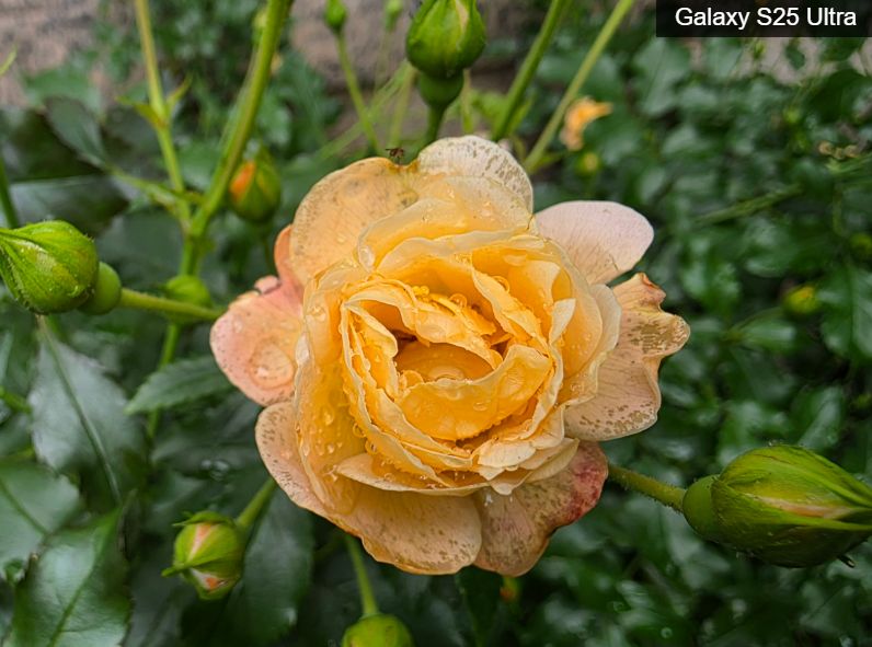 В целом, мне нравится, как получились снимки этого жёлтого цветка. Лепестки не только хорошо прорисованы, но и захватывают капли воды вокруг него. Но в конечном счёте всё сводится к фокусировке, которая в данном случае осуществляется на S25 Edge.