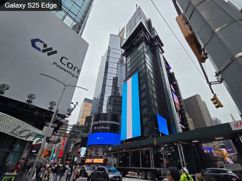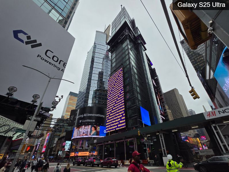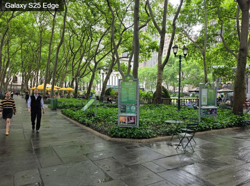 В то же время экспозиция кадра и детализация всей сцены, такие как указатели «В одну сторону» и «Бродвей» слева, выглядят идентично. Но поскольку у S25 Edge немного более широкий охват, я отдаю ему предпочтение.